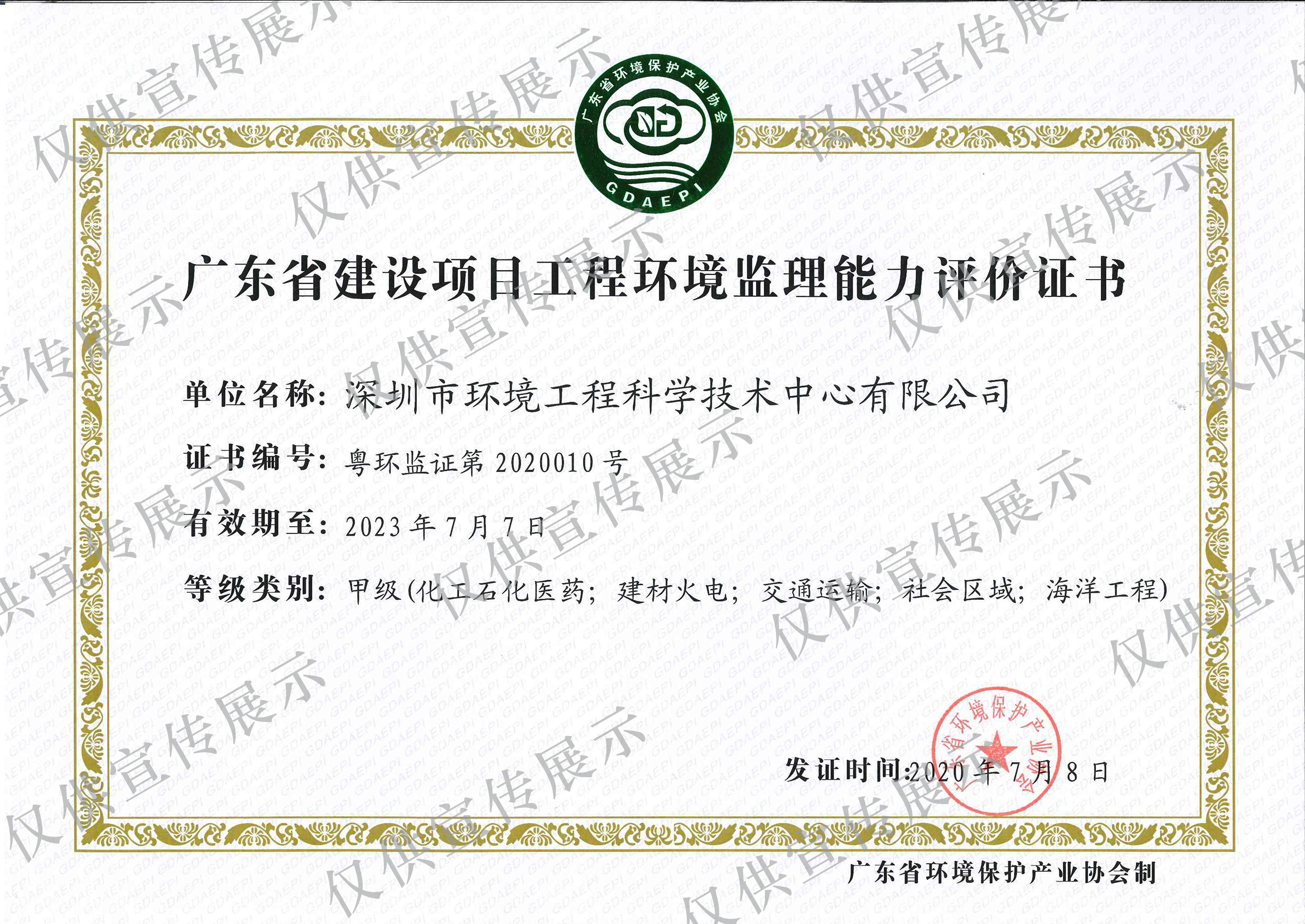 廣東省建設(shè)項(xiàng)目工程環(huán)境監(jiān)理能力評價(jià)證書